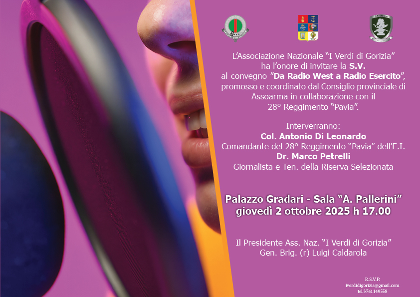 Benvenuti nel sito “i Verdi di Gorizia”. Qui troverai informazioni sulla nostra associazione, la storia del reggimento, passato e presente, calendario degli eventi e molto altro ancora. Il sito è nuovo, quindi se si trova un collegamento interrotto, una pagina che non verrà caricato, o qualsiasi altra cosa fuori della norma, si prega di inviare una email a iverdidigorizia@gmail.com, e fateci sapere.